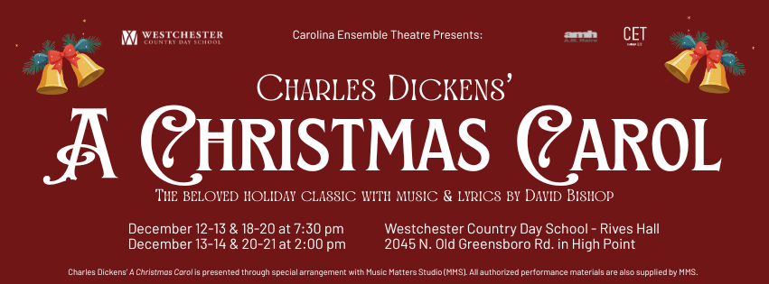 After starting at the NC Shakespeare Festival nearly half a century ago, A Christmas Carol returns to the Triad for its 41st season with a return to High Point! Experience the holiday tradition beloved by generations of North Carolinians since 1977. Join Carolina Ensemble Theatre as we journey with Ebenezer Scrooge through Christmases Past, Present, and Future!